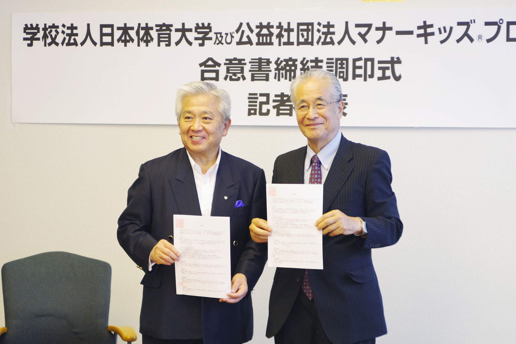 | 136 | 2018・9・13 | 学校法人日本体育大学及び公益社団法人マナーキッズプロジェクト合意書締結記者発表 | 記者発表風景写真 | 記者発表文 週刊教育資料 |