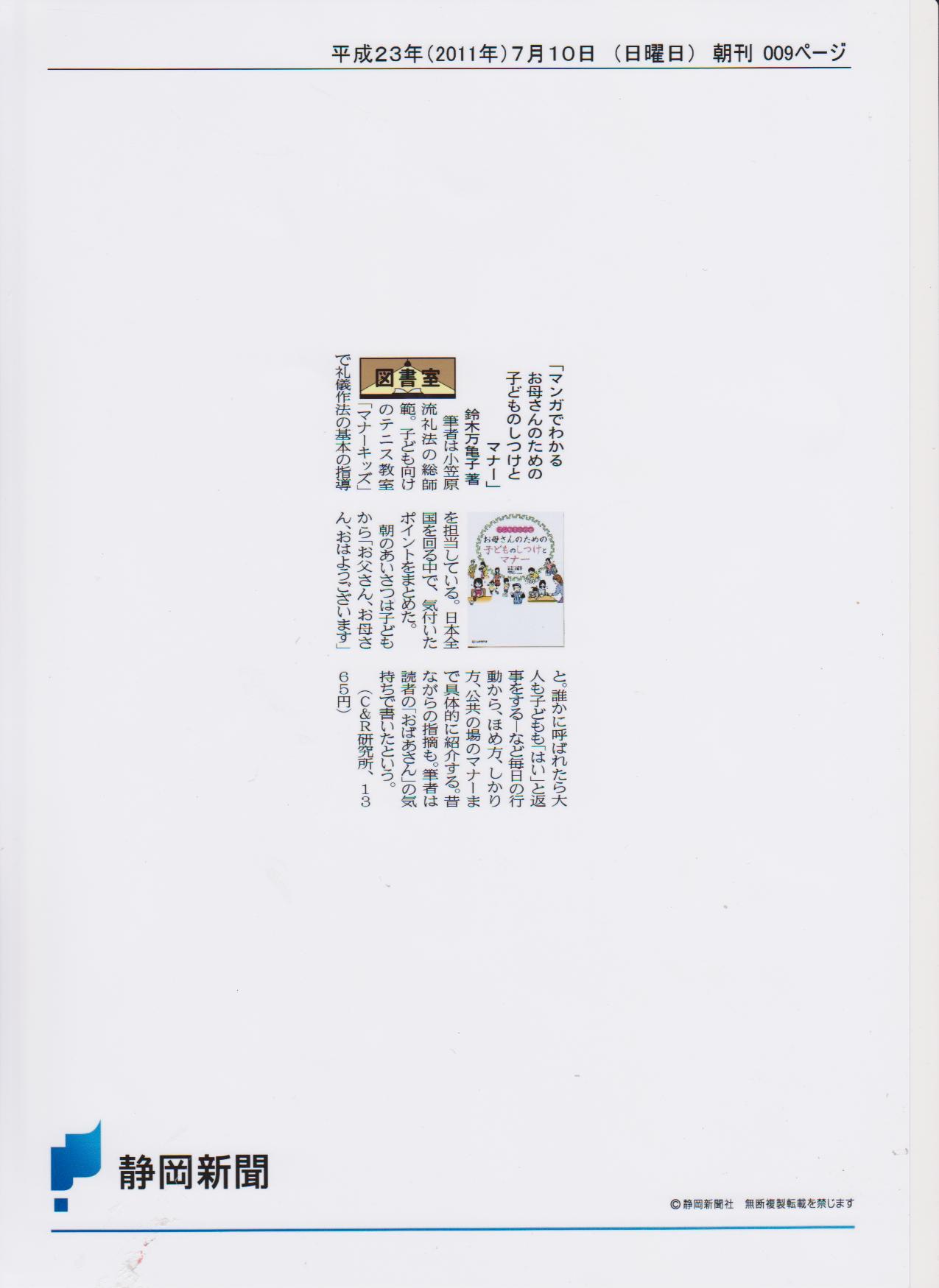 | 「お母さんのための子どものしつけとマナー」書評 静岡新聞 | ||