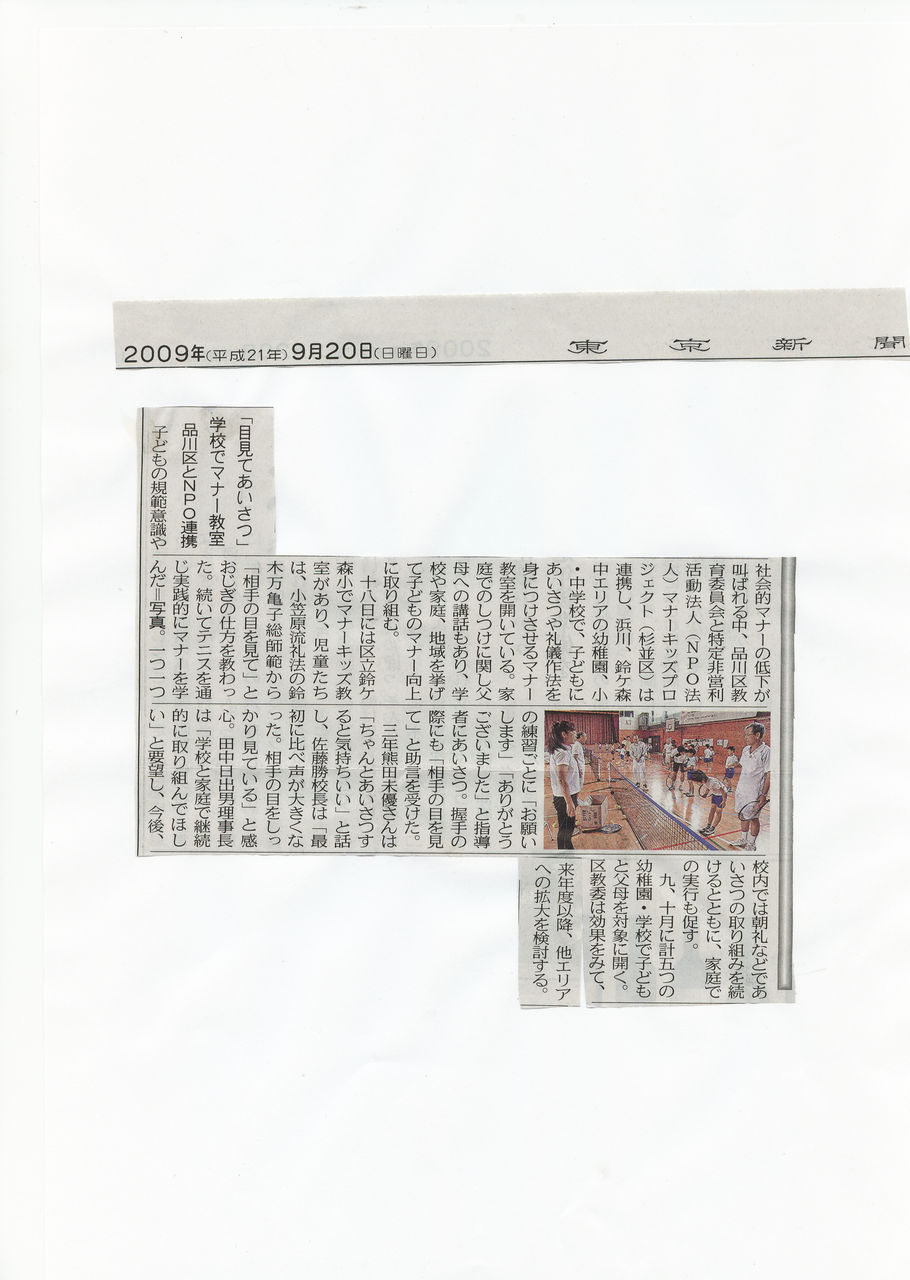 ▼品川区立幼稚園・小学校・中学校におけるマナーキッズ教室の展開について(2010年4月30日)記者発表文