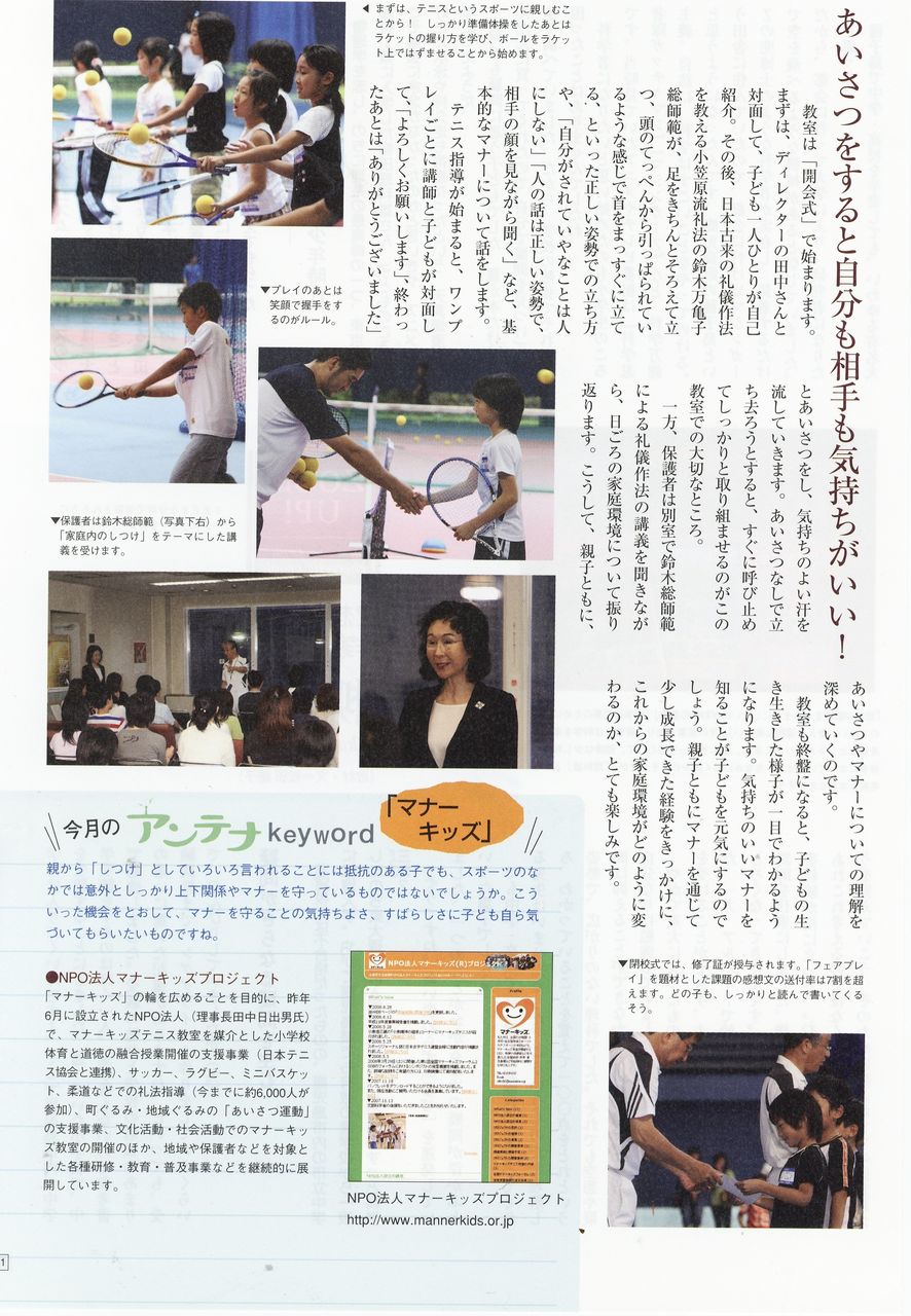 ▼和歌山県知事仁坂吉伸氏の紀の国いきいきトークに「テニス教室で「体」「徳」「知」のバランスのとれた人材育成」和歌山県テニス協会マナーキッズテニス委員会及び関係者の皆さんと題してトークの内容が下記webサイトでご覧になれます。